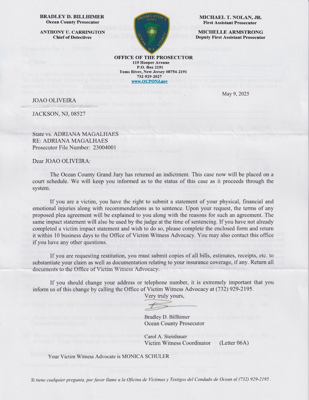 by an Ocean County NJ Grand Jury for FELONY Interference With Custody (N.J.S.A. 2C:13-4a(1).