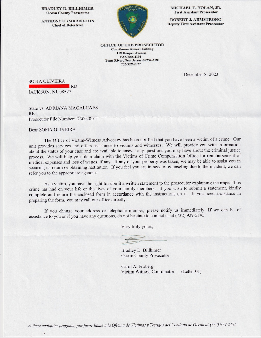 Adriana Magalhães Hoineff, Sofia's mother, has been indicted